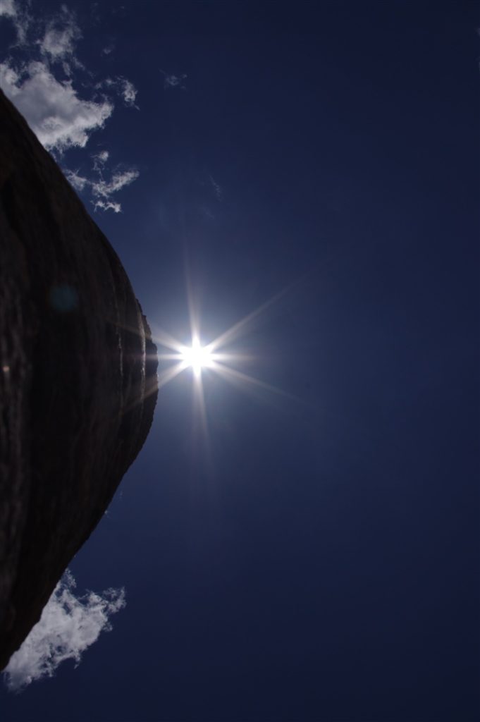 When the Sun is above the horizon, it lights up the whole sky. When it is below the horizon, the sky is dark, a time which we call night. During the night you can see points of light in the sky: planets and stars. The Sun is a star itself. But those other stars are so very far away from us that they appear billions of times dimmer than the Sun. When the Sun is in the sky, we call it daylight or daytime. The stars are still up there, they are just too dim to see through the bright, sunlit sky. The Moon is bright enough to see in the daylight, and so is the planet Venus, if you know right where to look.